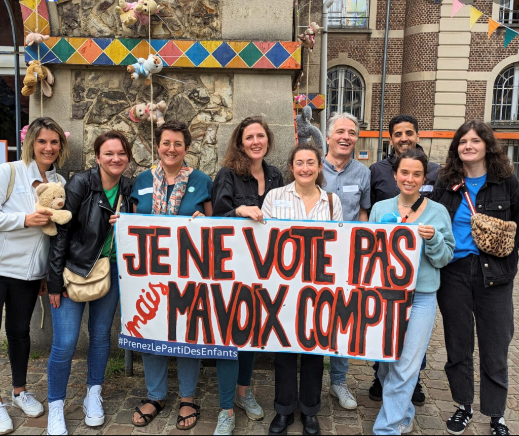 Par ailleurs, en mai 2024, le Collectif s’est associé avec le secteur associatif, la Code (NDLR : la Coordination francophone des ONG actives dans le champ des droits de l’enfant)et – notamment – la Ligue des Droits humains (LDH) pour mener l’action baptisée« Je ne vote pas mais ma voix compte ! » : les citoyens étaient invités à placer une peluche à leur fenêtre pour témoigner de leur attention au respect des droits de l’enfant. Lors du rassemblement de clôture, les professionnel·les des secteurs concernés par l’enfance et la jeunesse ont mis en lumière les situations de déni de droits dont les enfants sont victimes en Belgique, et revendiqué du monde politique qu’il mette ces droits au centre de ses préoccupations électorales.